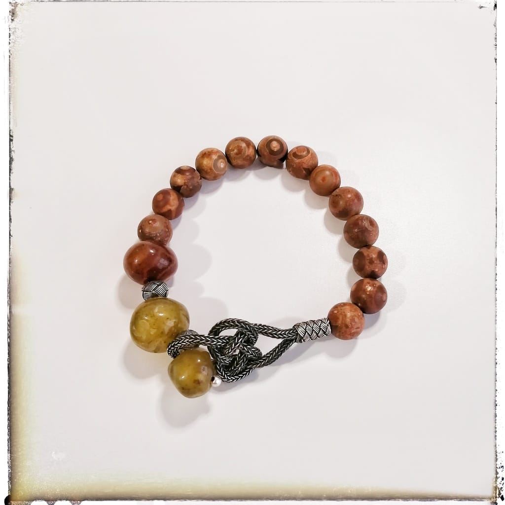 1000 ayar gümüş kazaziye, örgü el işçiliği tasarım bileklik. Tibet Akik / Akik kombin tasarım bileklik. 21 cm